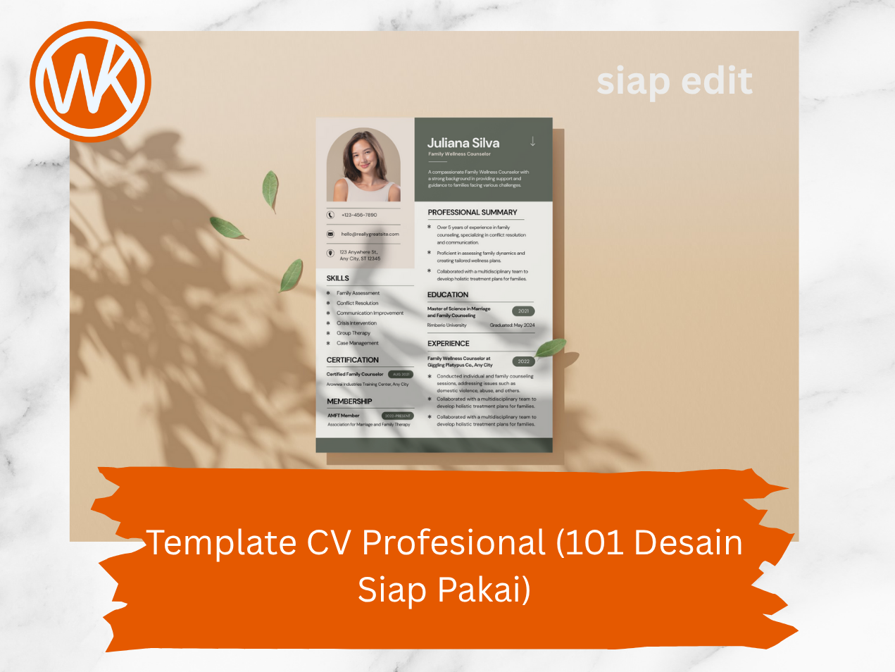 | Jumlah Desain | 101 Pilihan Desain CV Unik. |